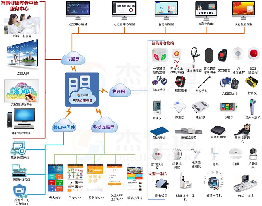 杰佳通智慧健康養(yǎng)老平臺應用于居家養(yǎng)老、機構(gòu)養(yǎng)老、社區(qū)養(yǎng)老、醫(yī)養(yǎng)結(jié)合、地產(chǎn)養(yǎng)老、旅居養(yǎng)老和政府監(jiān)管養(yǎng)老,已有幾千家養(yǎng)老運營單位在使用。