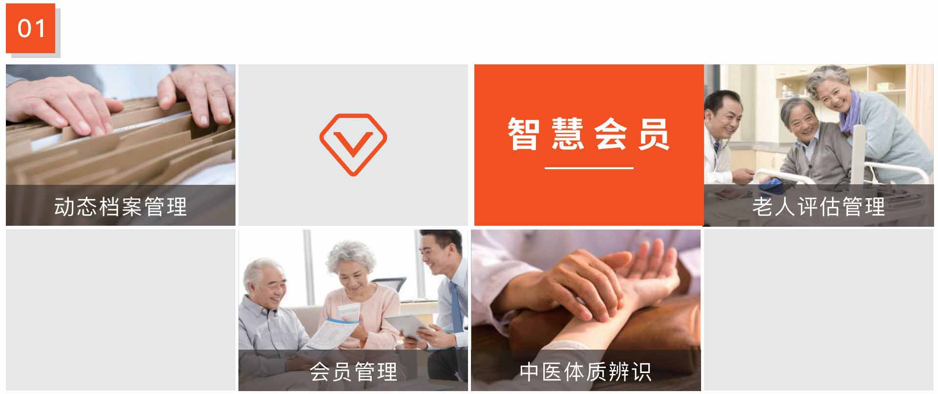 對所管理的老人基本信息(基本信息、健康信息、親屬信息等)動態(tài)管理起來,并對老人活動能力、中醫(yī)體質(zhì)等進(jìn)行評估,對老人分機(jī)管理;發(fā)展為會員的用戶進(jìn)行個性化的會員服務(wù)管理。
