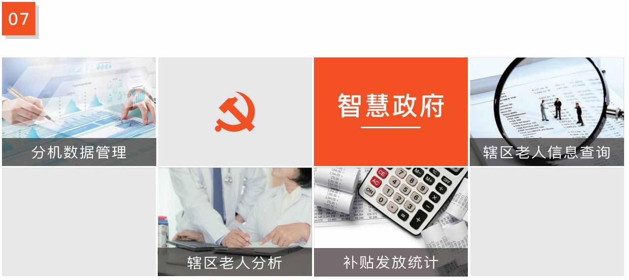 定制化政府需求,科學(xué)管理信息,全面把控質(zhì)量,可視化數(shù)據(jù)呈現(xiàn);轄區(qū)內(nèi)老人數(shù)據(jù)實(shí)時更新,補(bǔ)貼信息嚴(yán)格監(jiān)管,有政府實(shí)時了解老人、社區(qū)、服務(wù)機(jī)構(gòu)、服務(wù)人員、老人健康情況、老人求助情況等統(tǒng)計(jì)分析,為政府做出相關(guān)決策提供數(shù)據(jù)依據(jù)。