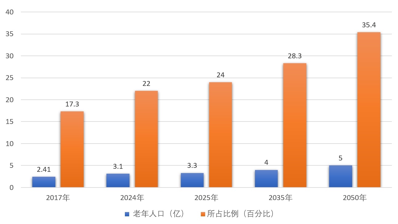 我國確立了“以居家為基礎(chǔ)、社區(qū)為依托、機(jī)構(gòu)為支撐”的養(yǎng)老產(chǎn)業(yè)框架和9073養(yǎng)老格局,90%居家養(yǎng)老;2026年2月28日,國家統(tǒng)計(jì)局發(fā)布,截至2025年底,我國60歲及以上老年人口有3.23億人,占總?cè)丝?3%,其中,65歲及以上人口超2.23億人,占15.9%,在2050年前后達(dá)到頂峰,約占總?cè)丝诘?/3。那時(shí),中國將有4.8億、甚至接近5億老年人,是世界上老年人口最多的國家。養(yǎng)老服務(wù)業(yè)目前已超20萬億市場規(guī)模。